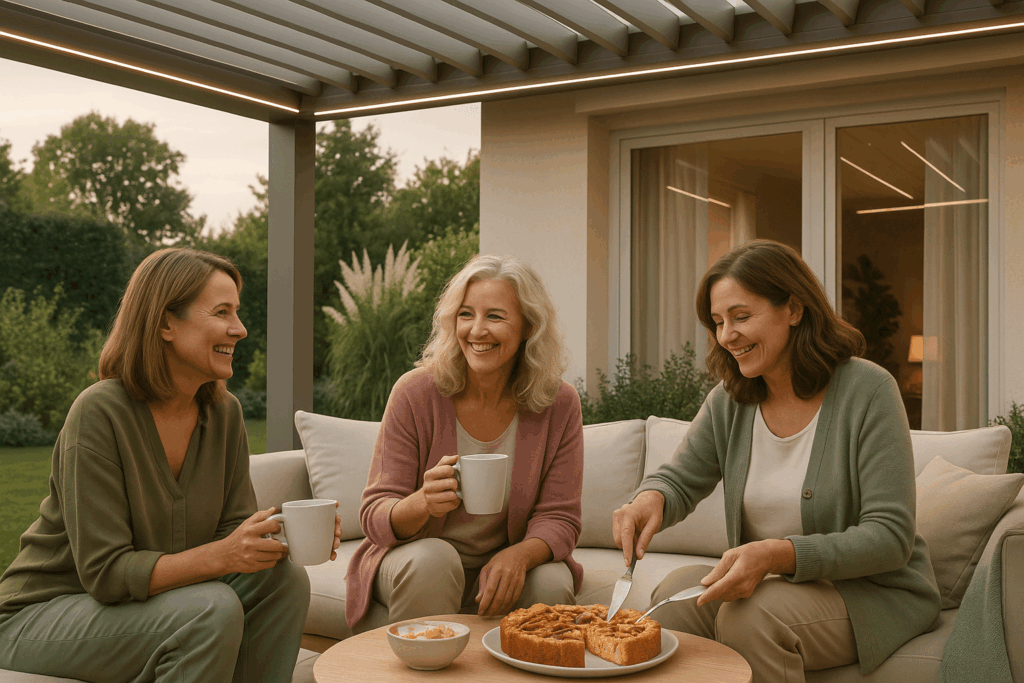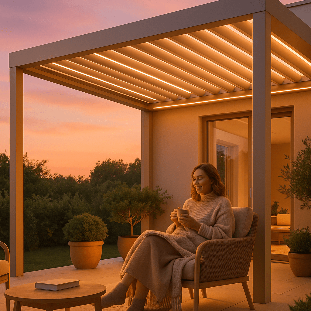 Lass den Alltag draußen und schaffe dir einen eleganten Rückzugsort mit Stil. Das perfekte Zusammenspiel aus Design, Komfort und Wetterschutz – ganz ohne Stress, ganz für dich.